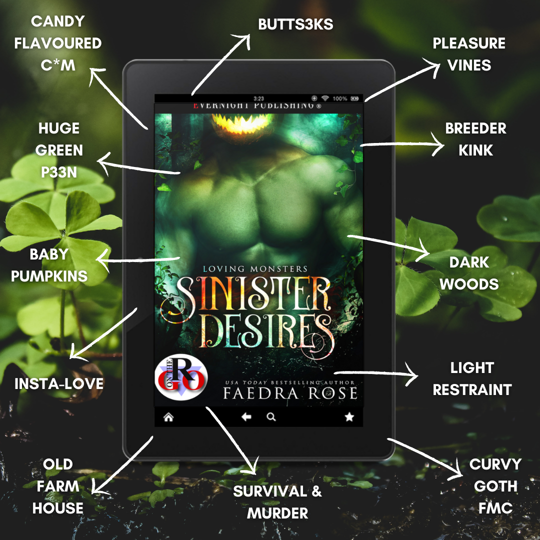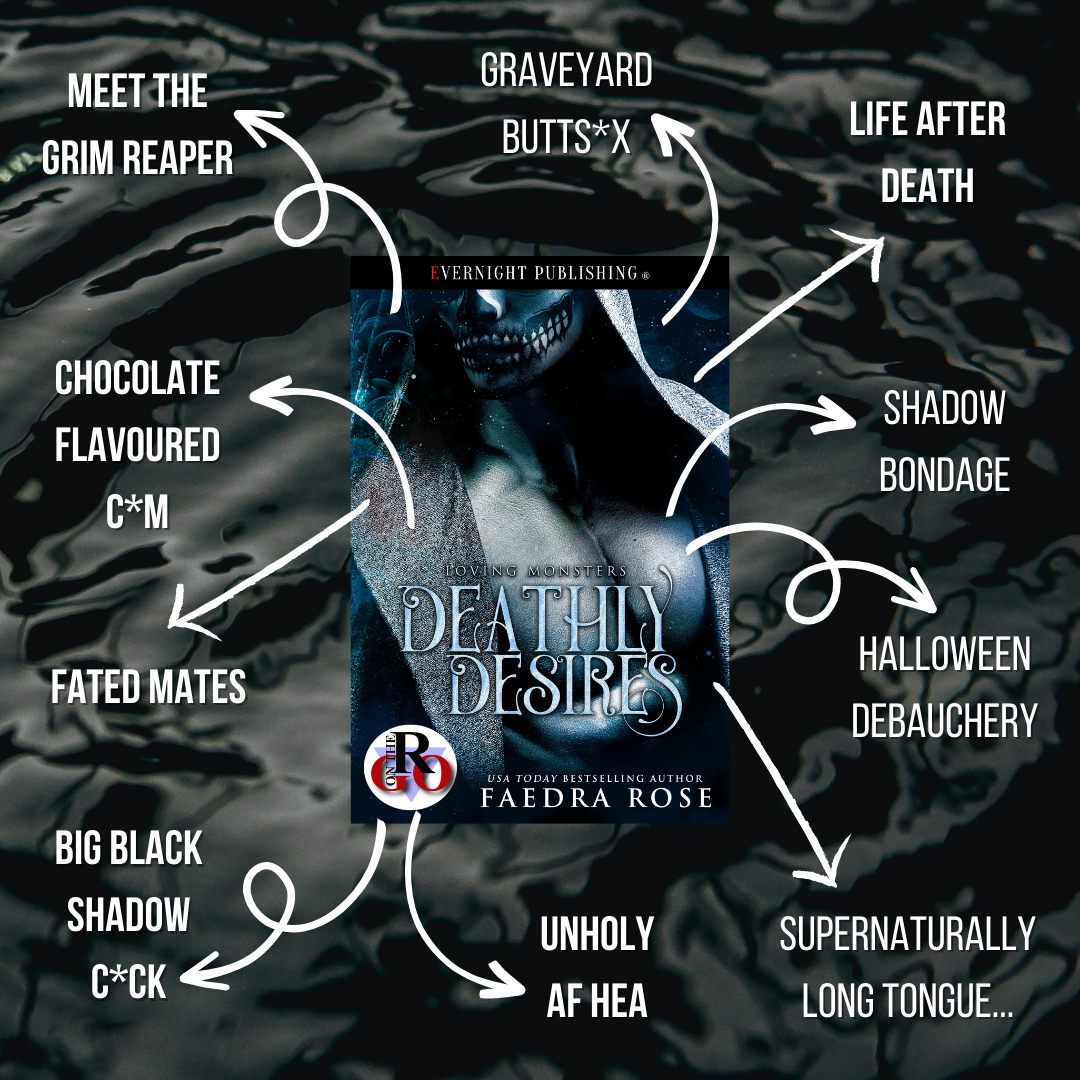 If you are a monster romance fiend like me then you’ll be psyched to learn that Infernal Desires is just one of three explicitly dark and taboo short novellas in the Loving Monsters series, so far! Each one stands alone, but they’re connected by a uniting mythology and similar themes.