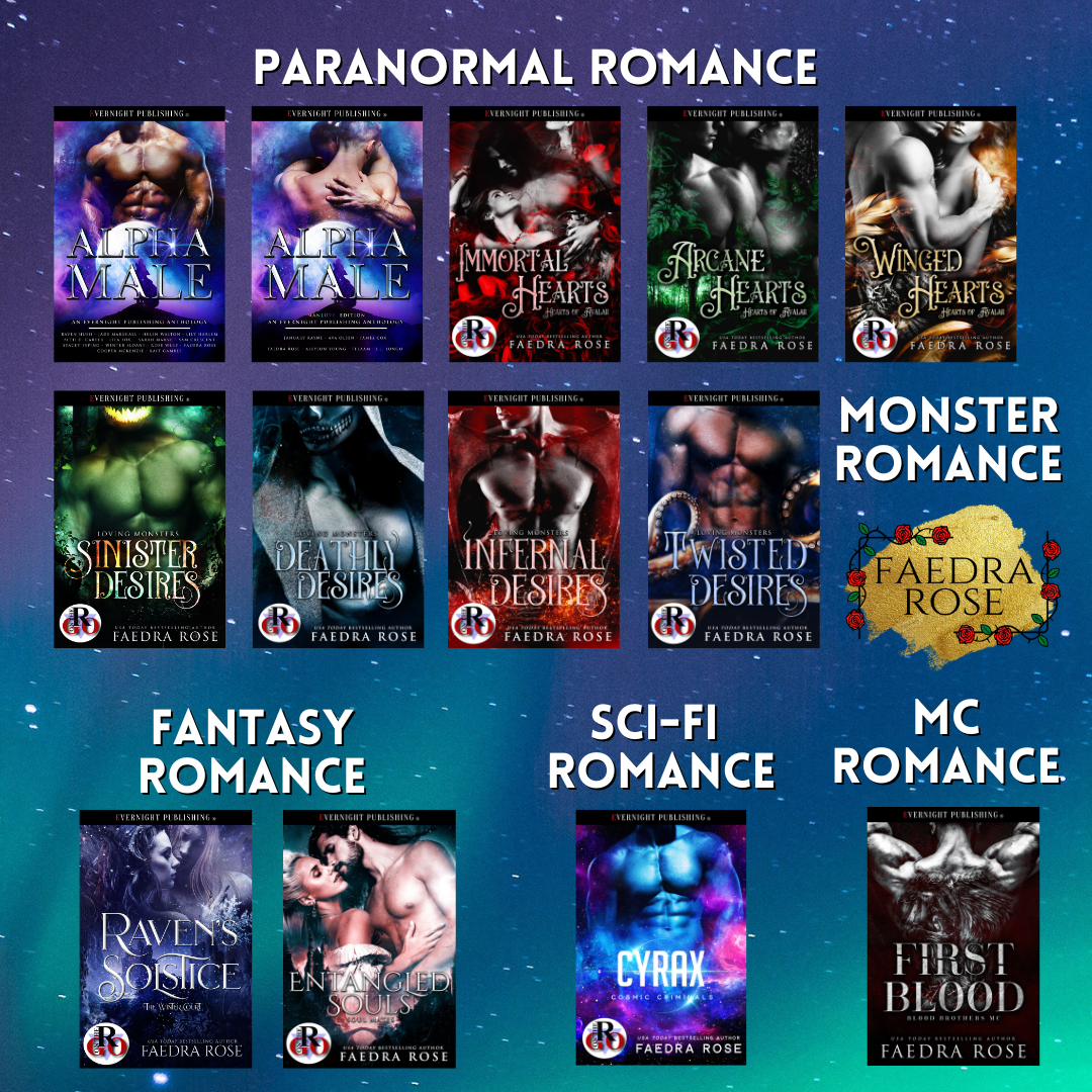 Or if monsters aren’t your thing, I have plenty of other erotic romances for you to choose from! Click HERE to see my full Evernight Publishing catalogue, or click the graphic below.