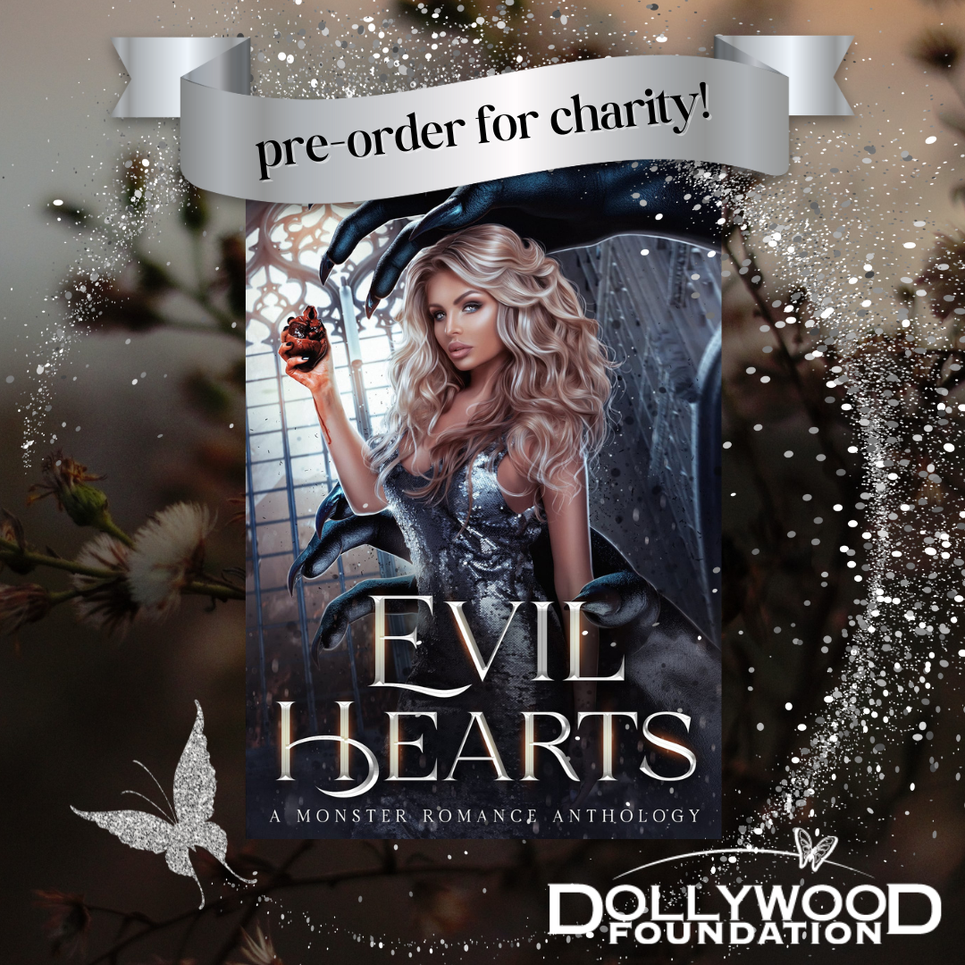 I’m delighted to be able to share with you all that I was invited to feature in this GORGEOUS monster romance anthology… and the best part? All profits from this charity anthology are being donated to the Dollywood Foundation, a worthy organization supporting both literacy development and educational enrichment! So, if you like to feed your own evil little heart every once in a while, treat yourself to Evil Hearts and know that you’re supporting a wonderful cause!