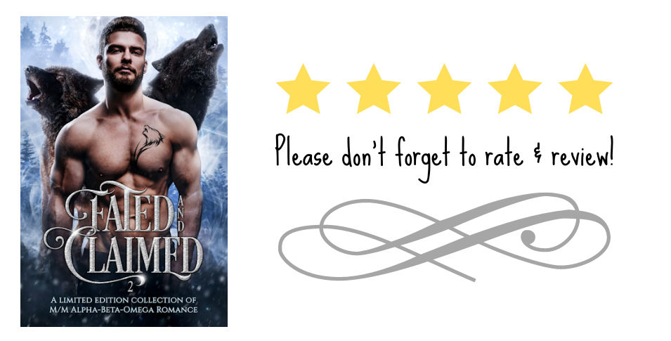 Yes, you read that right! This is your LAST CHANCE to purchase Fated and Claimed 2! A Limited Edition collection of M/M Alpha-Beta-Omega romance! This beauty is being taken down late on the 4th, so don’t miss out! It’s available to purchase as an eBook, read for FREE on KindleUnlimited… or pick-up the thick and stunning paperback before it’s gone forever!